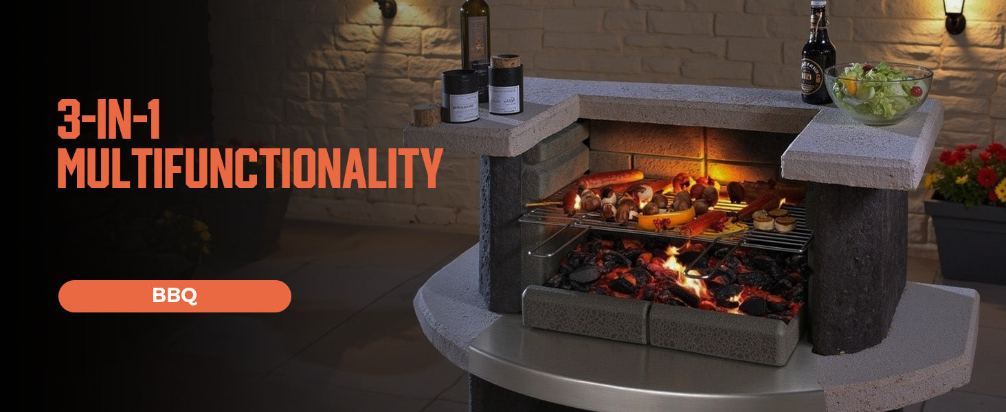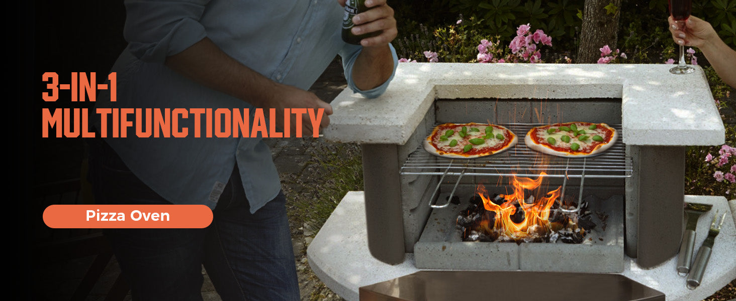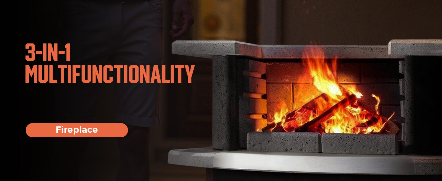 - ✨3-in-1 Multifunctionality: Enjoy your outdoor space all year round with this versatile outdoor fireplace. Not only perfect for grilling and pizzas cooking, but it also provides comforting warmth on cooler evenings, creating a cozy atmosphere for gatherings, romantic nights, or peaceful moments