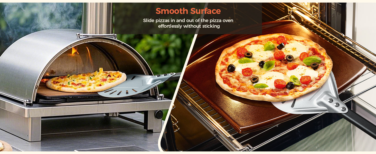 Superior Surface: Equipped with a smooth non-stick surface, this pizza peel can slide pizzas in and out of the pizza oven effortlessly without sticking and easy to clean, delivering the perfect pizza experience!