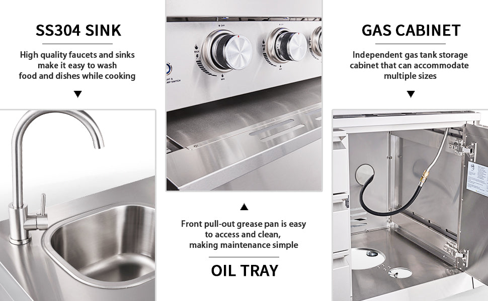 - Featuring 6 premium 304-grade stainless steel burners with a total of 72,000 BTUs of power, this BBQ grill provides ample heat to power through any cookout. The full front pull-out grease tray allows for easy access and cleaning, making maintenance a breeze.