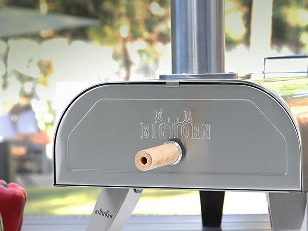 BIG HORN Outdoor pellet pizza oven is crafted from high-quality stainless steel, ensuring durability and safety for all your cooking needs. With 12 months of warranty, you can enjoy peace of mind while creating delicious meals. -